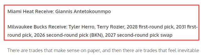 密尔沃基雄鹿得到:泰勒·希罗、特里·罗齐尔、2028年首轮选秀权、2031年首轮选秀权、2026年第二轮选秀权(篮网)、2027年第二轮选秀权交换