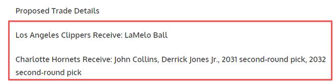 夏洛特黄蜂得到:约翰·柯林斯、德里克·琼斯二世、2031年第二轮选秀权、2032年第二轮选秀权