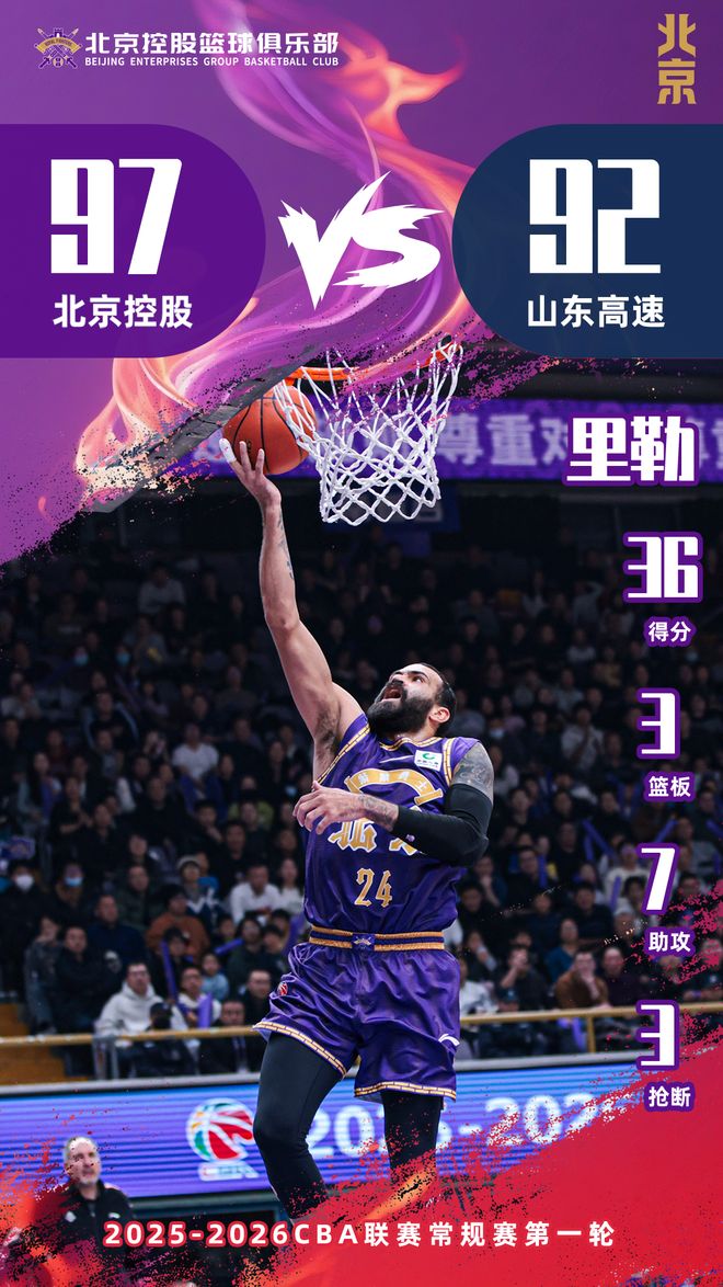 36分7助攻3抢断,里勒在揭幕战中用这份高光数据带领北控男篮逆转取胜,他像一枚定海神针,始终是场上最值得信赖的那一个。
