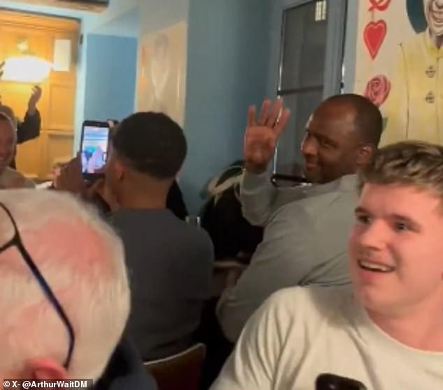 在其老东家前往法国参加欧协联关键战对阵斯特拉斯堡之前,前水晶宫主教练帕特里克-维埃拉与水晶宫球迷一同现身当地一家酒吧。