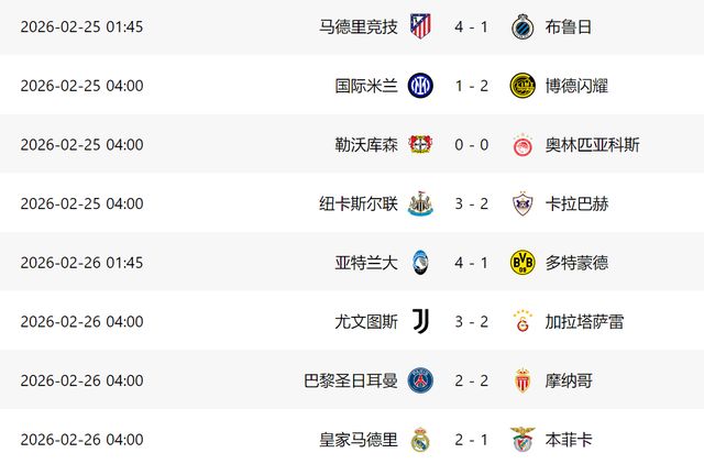 其他2场比赛,尤文主场迎战加拉塔萨雷,结果90分钟内,他们在少打1人的情况下连进3球,双方总比分变成5-5进入加时赛。遗憾的是,尤文在加时赛连丢2球,最终总比分5-7无缘逆转。好在亚特兰大足够争气,他们在主场4-1大胜多特蒙德,最终以4-3的总比分逆转对手,昂首晋级16强,亚特兰大也成为意甲在本届欧冠的独苗。在此之前,国米被博德闪耀淘汰,那不勒斯更是小组赛出局,4支参加欧冠的球队,只有亚特兰大晋级16强,他们也成为意甲在欧冠的遮羞布。接下来,亚特兰大在16强的对手,将在阿森纳和拜仁之间产生,不出意外的话,意甲将没有球队能进入8强。本赛季,意甲球队在欧冠的表现,证明他们已经失去竞争力,希望下赛季他们能重新找回自己的尊严!