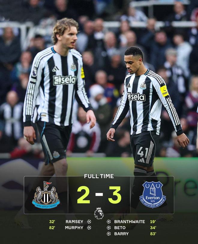 相比之下,纽卡斯尔联的夜晚则显得苦涩。主场迎战埃弗顿,纽卡两度扳平,却在最后时刻再度失守,2-3告负。